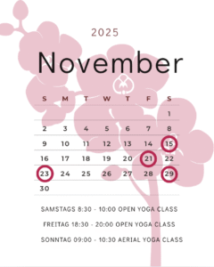 November: 15., 21. (Freitag, 18:30 – 20:00) und 29.